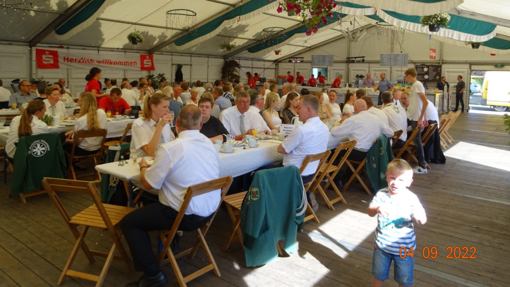 Das gemeinsame Frühstück am Sonntagmorgen im Festzelt konnten alle entspannt genießen. Daran anschließend fanden die Ehrungen der Schützen Mitglieder sowie des Tambourcorps statt. Geehrt wurden für langjährige Mitgliedschaft: