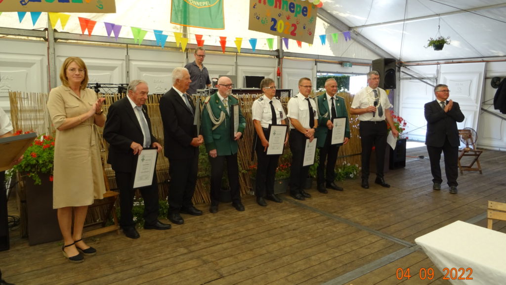 Bevor der Königsball starten konnten, wurden die beim Königschießen erfolgreichen Schützen der beiden Flügel und des Kopfes geehrt. Auch die Bürgermeisterin Britta Schulz ließ es sich nicht nehmen, in ihrem Heimatdorf einige Worte zu verlieren und allen zu danken, die durch ihre ehrenamtliche Tätigkeit ein Schützenfest möglich machen.