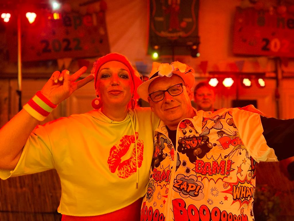 Der neue König, Königin Vera IV. und die Schützen zogen anschließend zurück zum Festzelt, wo ab 20.00 Uhr die 80/90er-Party startete. Viele Partygäste hatten es sich nicht nehmen lassen, sich dem Motto entsprechend zu kleiden. Viel Pink und Lila, bunte Jogginganzüge und Stirnbände waren zu sehen. Die Outfits von Andy Tekath und Martina van Duin wurden als die Besten mit einem Preis belohnt.